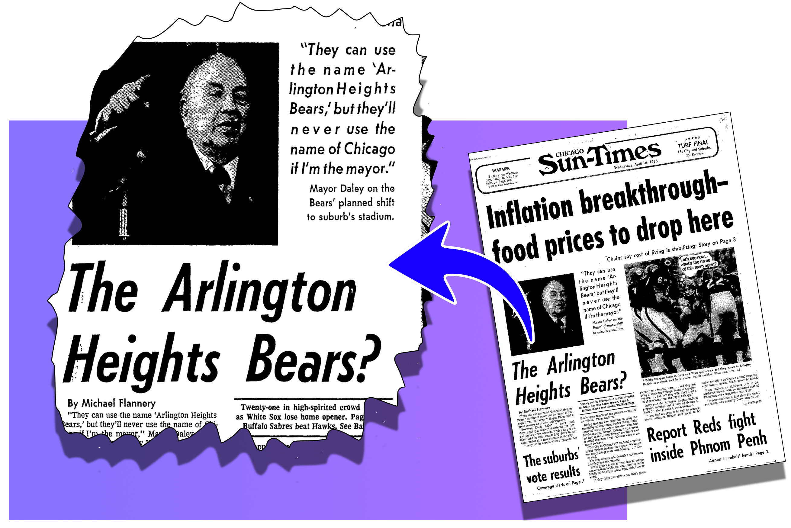 “Arlington Heights is not going to be foolish enough to underwrite a big bond issue for eight football games,” Daley barked at reporters.