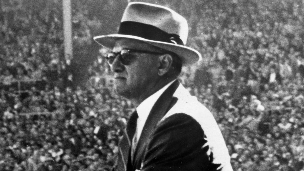 Papa Bear George Halas revealed the plans “at a hastily called press conference,”per the Sun-Times. No one ever explained why, since Papa Bear could have crooked his finger and summoned the city’s sports reporters at any time. Or anybody else, for that matter. Did Papa Bear prefer to avoid Mayor Daley’s instant wrath? It’s hard to imagine, but no other reason has ever been proffered.