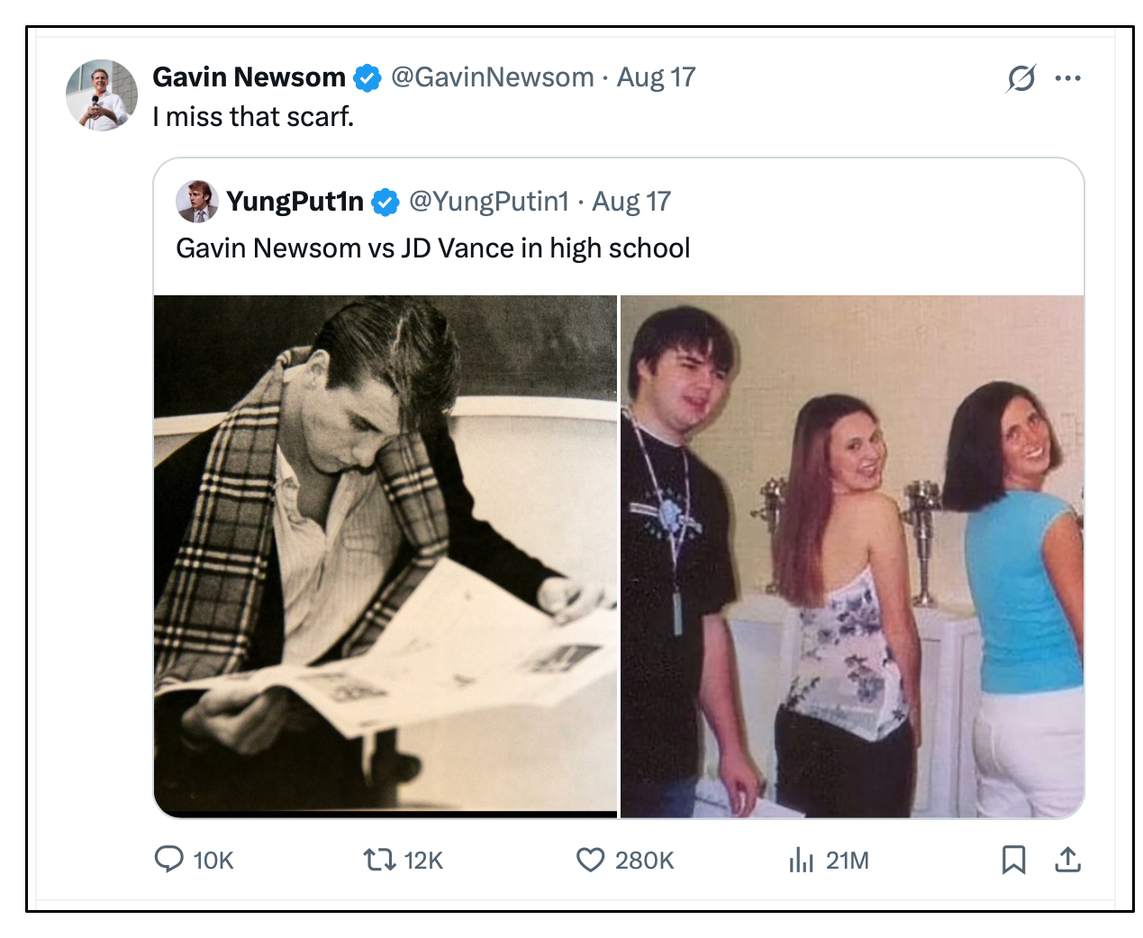 —to Newsom’s tweet trolling Trump in all caps.
