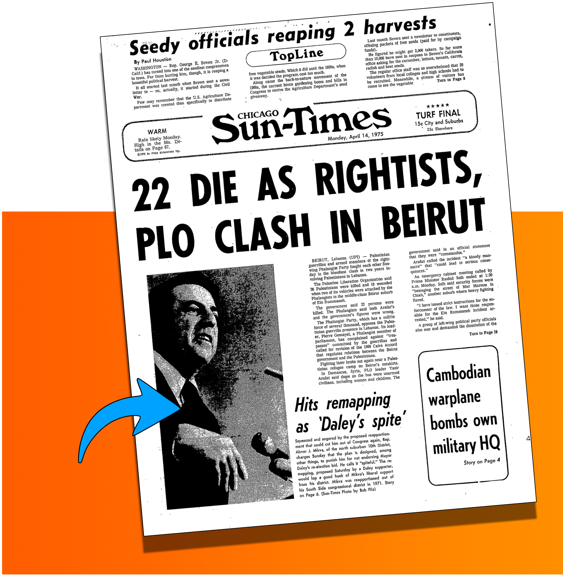 In the end, Clyde Choate got even with Mayor Daley and Gov. Dan Walker, reported the Daily News’ John Camper and Diane Monk, which might surprise you since we know Gov. Walker couldn’t possibly have wanted to help Mayor Daley in any way, much less in his remap attempt.