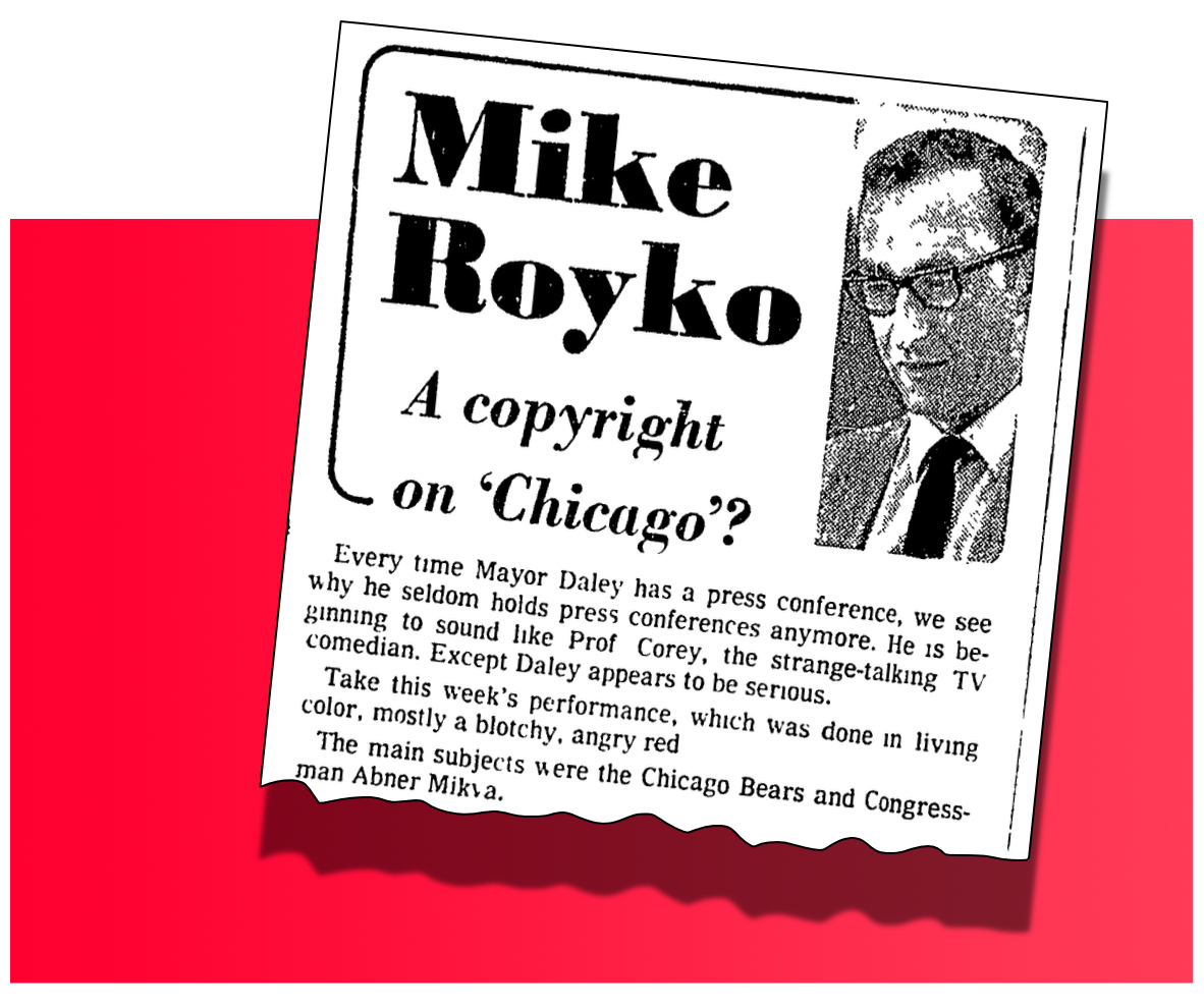 Mayor Daley handed Mike Royko a ready-made column for the day. The “performance,” wrote Mike, was “done in living color, mostly blotchy, angry red.”